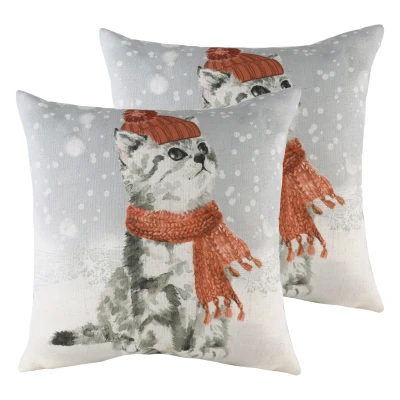 Evans Lichfield Snowy Cat With Scarf Cushions (Twin Pack) Multicolour Size 43 cm x