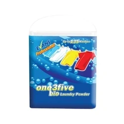 Biological washing powder for professional use. Effective at all temperatures and in all water conditions. Oxygen based bleach and enzymes for stain removal. Colour-safe. Lasts up to 135 washes.