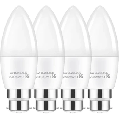 EvaStary B22 Bayonet Candle Bulb, 5W Light Bulbs 40W Equivalent, Warm White 3000K C37 LED Cap, Non Dimmable, Pack of 4