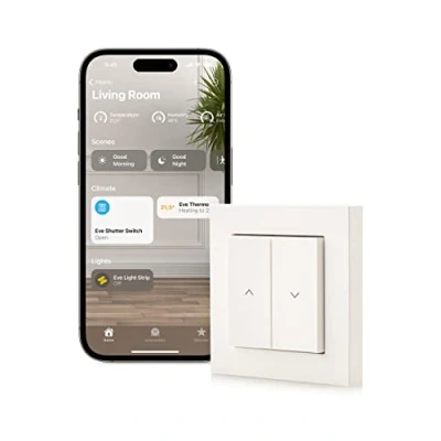 Eve Shutter Switch requires an iPhone or iPad with the latest version of iOS/iPadOS Control the roller shutter via app, Siri or on the switch yourself. Save schedules on Eve Shutter Switch to automatically switch the shutter regardless of iPhone and home network Adaptive shading for a pleasant indoor climate thanks to automatic control according to the position of the sun HomeKit technology: outstanding ease of use and high safety. Automatically integrates into a thread network (supports Bluetooth and thread) and improves stability and reach as a thread junction Strict data protection: no Eve cloud, no registration and no tracking. Local processes and communication, without bridge or cloud dependency. The Eve Shutter Switch requires a neutral conductor and is only suitable for use with copper or copper clad cable in dry indoor spaces, Weight: 0.1433004703 Pounds, Manufacturer: Eve
