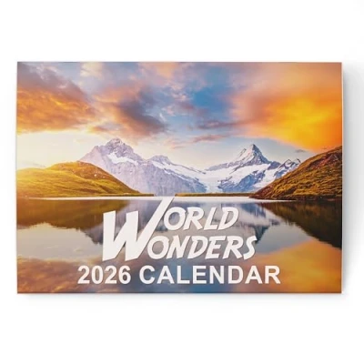 Iconic World Wonder Photos - Features stunning images of famous landmarks and ancient wonders from around the globe. Beauty meets function – Practical month-to-view layout with space for notes, balancing inspiration and organisation in one design. Designed to impress – Sleek A4 size that opens to A3, perfect for adding a nature-inspired touch to any home or office. Easy to use and enjoy – Durable book-style binding with simple wall-hanging design keeps each month neatly displayed. Stay ahead all year – Includes mini calendars for planning at a glance, plus extra pages for holidays and notes. Great Gift for Travel Lovers - Perfect for adventurers, globetrotters, students and anyone who loves world landmarks.