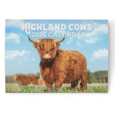 Charming Highland Cow Photos - Enjoy a year of adorable shaggy Highland cows captured in beautiful rural and countryside scenes. Beauty meets function – Practical month-to-view layout with space for notes, balancing inspiration and organisation in one design. Designed to impress – Sleek A4 size that opens to A3, perfect for adding a charming Highland cow touch to any home, office or workspace. Easy to use and enjoy – Durable book-style binding with simple wall-hanging design keeps each month neatly displayed. Stay ahead all year – Includes mini calendars for planning at a glance, plus extra pages for holidays and notes. Perfect Gift for Cow Lovers - A brilliant present for fans of Highland cows, nature lovers, farm décor fans and anyone who loves rustic charm.