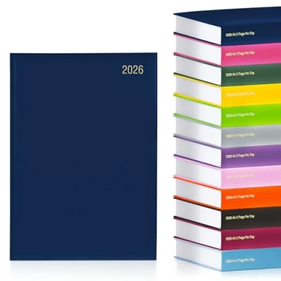 Two Pages Per Day Layout – Each day of 2026 is spread across two ruled pages, offering generous space for detailed planning and notes. Large A4 Writing Area – A4 size provides plenty of room to record appointments, to-dos, meetings, and daily thoughts. Hardback Premium Finish – Durable hardback cover protects pages and ensures long-lasting everyday use. Smooth High-Quality Paper – Printed on quality paper designed for comfortable writing with pens and pencils. Ribbon Page Marker – Built-in ribbon bookmark helps you quickly find your current day or section.