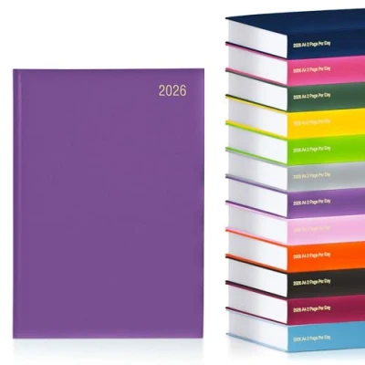 Two Pages Per Day Layout – Each day of 2026 is spread across two ruled pages, offering generous space for detailed planning and notes. Large A4 Writing Area – A4 size provides plenty of room to record appointments, to-dos, meetings, and daily thoughts. Hardback Premium Finish – Durable hardback cover protects pages and ensures long-lasting everyday use. Smooth High-Quality Paper – Printed on quality paper designed for comfortable writing with pens and pencils. Ribbon Page Marker – Built-in ribbon bookmark helps you quickly find your current day or section.