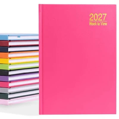 evelay 2027 Diary A5 Week to View Hardback Planner Organiser Journal with Ribbon Marker Ideal for Work, School & Personal Planning (A5, Cerise)