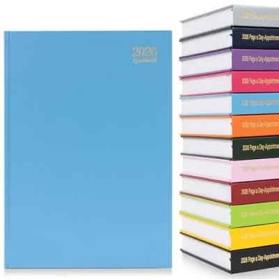 Page a Day Appointment Layout – One full A4 page per day, including Saturday and Sunday, ideal for detailed daily scheduling. Hourly Time Slots 9am to 5pm – Features 30-minute intervals to manage appointments, meetings, and time-based planning with ease. Large A4 Writing Space – Generous page size offers plenty of room for notes, reminders, and personal schedules. Hardback Cover with Ribbon Marker – Durable hardback finish with a built-in ribbon bookmark for quick page access. Extra Planning Information – Includes year planner plus useful reference pages such as time zones, international dialling codes, and currency charts.