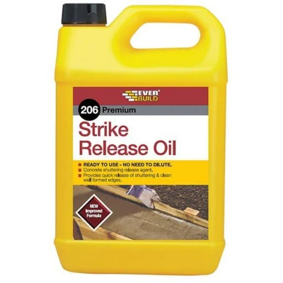 EVERBUILD 206 Strike Release Oil is a high-quality chemical release agent designed to facilitate the easy removal of concrete shuttering, ensuring that the edges of concrete structures are left clean and well-formed. This product is formulated as a solvent and mineral oil-free emulsion based on biodegradable synthetic oil, making it an environmentally friendly choice.