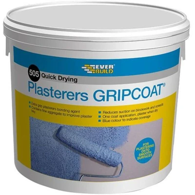 General description Everbuild 505 Plasterer's GRIPCOAT is specifically designed to provide an improved key to smooth surfaces. It contains a fine aggregate that offers a mechanical key to various backgrounds such as plaster, concrete, painted surfaces, textured surfaces, and ceramic tiles. This product is applied in one coat and is colored blue to indicate coverage. Technical specifications MPN: GRIPCT10 EAN: 5029347611538 Colour: Blue Size: 10L Other information