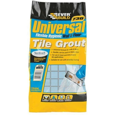 General description Everbuild 730 Uniflex Hygienic Tile Grout is a cementitious grout specifically designed for wall and floor tile applications, accommodating joints up to 15mm wide. The grout features an added powder polymer that enhances flexibility and water resistance, resulting in a durable, water-repellent finish. It is suitable for a variety of common tiles, including ceramic, natural stone, and porcelain. Additionally, it contains Mould Shield for long-lasting anti-fungal protection against black mould. Technical specifications Colour: Ivory Size: 5 kg Type: Grout MPN: UNIFLEX5IV EAN: 5029347612306 Other information