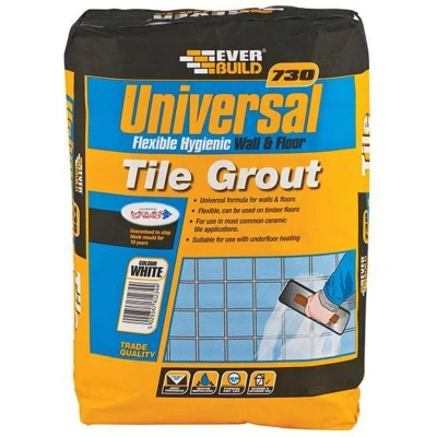 Everbuild 730 Universal Flexible Hygienic Wall and Floor Tile Grout For Use With Joints Up to 15mm wide White 5kg