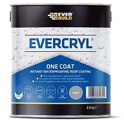 Everbuild Evercryl One Coat Instant Waterproofing Suitable for Roofs, Gutters and Gulleys Grey 2.5kg