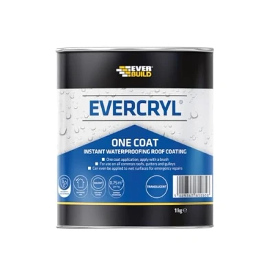 Everbuild Evercryl One Coat Instant Waterproofing Suitable for Roofs, Gutters and Gulleys Translucent 1kg