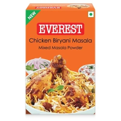 AUTHENTIC CHICKEN BIRYANI MASALA POWDER - Bring authentic Indian flavour to your cooking with Everest Chicken Biryani Masala, a carefully balanced Indian spices blend made from selected ingredients for traditional chicken biryani. This aromatic masala powder delivers the rich aroma and layered taste associated with classic dum-style biryani for consistent, restaurant-style results at home. USE ACROSS A WIDE RANGE OF DISHES - Ideal for chicken biryani, this versatile Indian spice mix also works well in pulao, rice dishes, marinades and gravies. Use it as a biryani seasoning, biryani masala powder or Indian curry spice blend to add warmth, depth and flavour across a variety of home-cooked meals. BALANCED BIRYANI SPICE PROFILE - Formulated using carefully selected Indian spices and ingredients to enhance both rice and chicken without overpowering the dish. The seasoning delivers aroma, warmth and depth, creating the signature fragrance and flavour expected from authentic Indian chicken biryani. EASY AND CONVENIENT PREPARATION - Read the packaging for full instructions. Add directly during cooking or mix into marinades for fast, reliable flavour. This all-in-one Indian spice blend replaces the need for multiple spices, making biryani preparation simple, efficient and consistent. INDIA’S NO. 1 SPICE BRAND - Trusted for 58 years, Everest serves millions of homes with authentic flavours crafted from pure spices and regional blends. Recognised as India’s largest selling spice brand by the AC Nielsen All India Store Audit Report 2024, Everest produces over 500 tonnes daily, across over 400 products and has earned Superbrand status ten times. From timeless classics to innovations like Eazy Chef and Tasteeto, Everest brings reliable quality and true Indian taste to kitchens across the world!
