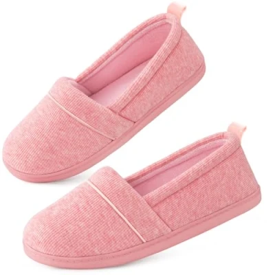 EverFoams Ladies' Memory Foam Comfort Cotton Knit House Shoes Light Weight Terry Cloth Loafer Slippers with Anti Skid Rubber Sole, Pink, 8 UK