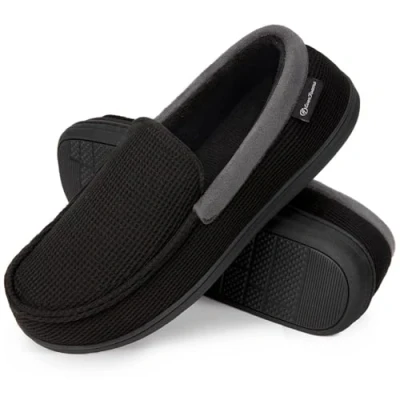 Size Tips & Guidance: The slippers are padded with high-density memory foam and might feel snug at first - just give them a couple of days to break in and they should fit better. If you are between sizes (e.g., 7.5, 8.5, 9.5, 10.5, 11.5) or prefer to wear socks, please get half size up Soft Waffle Knit Upper: Featuring improved air permeable material, these memory foam moccasin clog house @@@I2NgiQ7wSYYAvWbl8o/uRWItLTsxzjJs@@@ will let your feet odor-free and not stuffy for all-day and all-seasons, especially in summer. Slip into these light-weight moc slippers today and enjoy the time in bedroom, office, travel, after shower or during a casual family talk Comfortable Coral Fleece Lining: Soft lining naturally is tailored to your feet well with each step and wicks away moisture for dry feet. The classic and casual style design really matches well with your loungewear, pajamas, robes etc or when you are walking the dog. It also features a soft and non-slip rubber outsole for indoor and outdoor wear High-density Memory Foam Insole: EverFoams slippers are all padded with high-density memory foam, along with multi-layered high resilient cushioning, which will cuddle your weary feet in the coziness for all-day-everyday ease or even driving the car. Extra shock absorption insole enhances stability for your each step and make you feel like walking on the clouds Easy-care & Quality Guaranteed: Made of quality, durable material, these moc slippers are hand and machine washable, so you can easily remove stains or dirt. If you ever have a problem with your slippers, know that we are dedicated to making it right. Great gift for hardworking husband, Dad or best friends