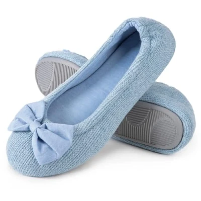 EverFoams Women's Ballerina Slippers Lightweight Comfy Memory Foam House Shoes with Stretchable Heel Design, Blue, 9/10 UK