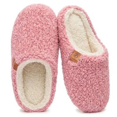 EverFoams Women's Mule Slippers Comfy Warm Shearling Lightweight Breathable Memory Foam Anti Slip House Shoes Pink, 3 4UK