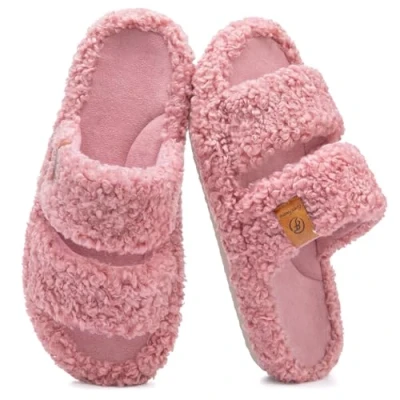 EverFoams Womens Fuzzy Open toe Slippers Soft Comfy Memory Foam Indoor House Shoes Dusty Rose,7 8 UK