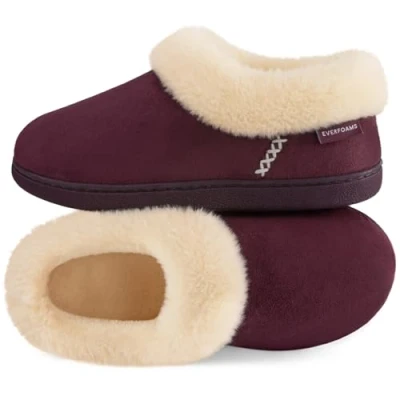 EverFoams Women's Warm Slippers Fluffy Memory Foam Indoor Outdoor Closed back House Shoes Purple, 5 6 UK