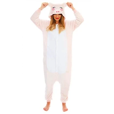 Adult unisex pink pig onesie kigurumi fancy dress costume hoody pajamas sleep wear Hand wash in cold water or dry clean only, as spinning will damage the outfit One piece costume only, the shoes are not included Material is flannel fleece Do not Machine Wash or Tumble Dry