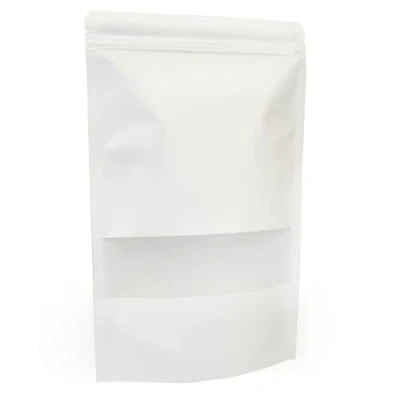 𝐋𝐎𝐍𝐆-𝐋𝐀𝐒𝐓𝐈𝐍𝐆 𝐔𝐒𝐄: These premium 100 white kraft paper bags are designed to ensure durability and reliability. With a sturdy self-stand-up design, they provide excellent support for storing food items like coffee beans, snacks, nuts, and more. 𝐒𝐏𝐀𝐂𝐄-𝐒𝐀𝐕𝐈𝐍𝐆 𝐒𝐄𝐋𝐅-𝐒𝐓𝐀𝐍𝐃-𝐔𝐏 𝐃𝐄𝐒𝐈𝐆𝐍: The self-standing feature ensures these bags take up minimal space in your pantry or display. Their compact design allows for easy stacking and better storage management. 𝐏𝐄𝐑𝐅𝐄𝐂𝐓 𝐒𝐈𝐙𝐄 𝐅𝐎𝐑 𝐌𝐔𝐋𝐓𝐈𝐏𝐋𝐄 𝐅𝐎𝐎𝐃 𝐈𝐓𝐄𝐌𝐒: Measuring 200x300mm, these resealable bags are ideal for storing various quantities of dry goods. Whether it's coffee beans, trail mix, granola, or other pantry essentials, these bags can accommodate your needs efficiently. 𝐑𝐄𝐒𝐄𝐀𝐋𝐀𝐁𝐋𝐄 𝐙𝐈𝐏 𝐋𝐎𝐂𝐊 𝐅𝐎𝐑 𝐅𝐑𝐄𝐒𝐇𝐍𝐄𝐒𝐒 & 𝐂𝐎𝐍𝐕𝐄𝐍𝐈𝐄𝐍𝐂𝐄: Each bag features a reliable zip-lock mechanism that ensures your food stays fresh for longer. The resealable design makes. it easy to access your items while maintaining their quality and aroma. 𝐄𝐂𝐎-𝐅𝐑𝐈𝐄𝐍𝐃𝐋𝐘 𝐀𝐍𝐃 𝐒𝐓𝐘𝐋𝐈𝐒𝐇 𝐖𝐇𝐈𝐓𝐄 𝐊𝐑𝐀𝐅𝐓 𝐃𝐄𝐒𝐈𝐆𝐍: Crafted from eco-friendly materials, these bags are a sustainable alternative for food storage. The elegant white kraft paper adds a touch of sophistication to your pantry or retail display.