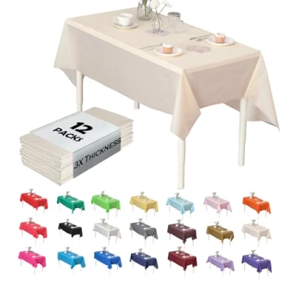 Evershine (12 Pack Heavy Duty Plastic Table Covers Tablecloth (Reusable) (Rectangle 54" X 108", Ivory)