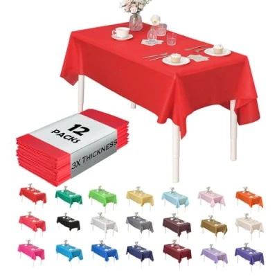 Evershine (12 Pack Heavy Duty Plastic Table Covers Tablecloth (Reusable) (Rectangle 54" X 108", Red)