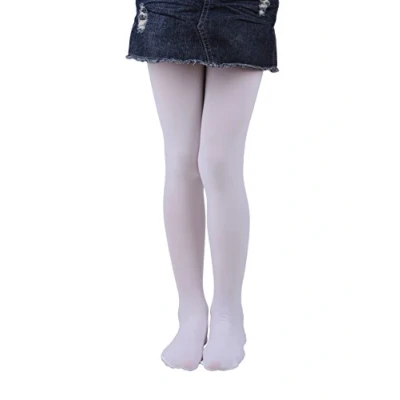 EVERSWE Girls Tights, Semi Opaque Footed Microfiber Dance Tights 40Den (White,5 7)