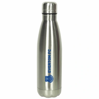 Stainless steel flask with metallic finish. Everton FC Crest & Logo 550ml capacity Screw top lid Height: approx. 26 cm.