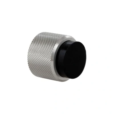 EVI Herrajes Designer Wall Door Stop Knurled Design 28x28mm Stainless Steel Black Rubber Adhesive and Screw Mounting