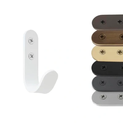 EVI Herrajes Hook Towel Holder White Wall Stainless Steel Screw Mount for Hanging Clothes, Towels, or Accessories Mod. 183CTBL