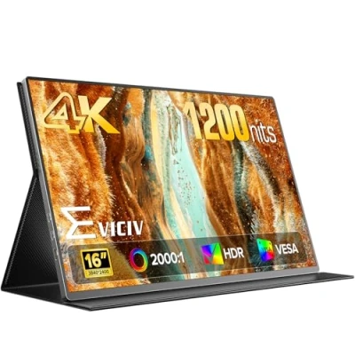 EVICIV 4K Portable Monitor, 16" IPS External Screen for Travel, UHD w/Smart Cover & Speakers, USB C Mini HDMI Screen, Compatible with PS3/4/5/Xbox/Switch/Laptop/PC/Phone