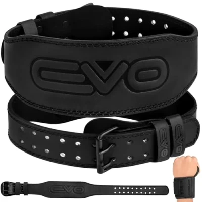 ✅ EVO Fitness Weight Lifting Belt is made of Genuine cowhide leather, 18" Black wrist straps are included with belt, 7 mm thick weightlifting belt for men and women.By helping the users harness their inner power, the men powerlifting belt becomes useful for training, deadlifting, squatting, lifting, and cross-training among other work out routines of exercise. ✅EVO Fitness Gym belt is available in 4-inch and 6-inch variations each with a wide padded back for superior lumbar support and to help you brace effectively before lifting. This unisex weight lifting belt is ideal for heavy workouts with various gym equipment. ✅These Gym Belts have High-quality industrial-grade steel in the adjustable roller buckle with twin prongs which helps prevent slipping and riding of the strength training gym belt. The reinforced rivets work in conjunction with the roller buckle to maximize support. ✅These lifting belts have dual-pronged buckle can be adjusted on any of the 10 precision-drilled holes for the optimal fitting of the gym training belt, while the additional leather flap prevents direct contact of the buckle with the body to minimize discomfort. ✅These belt features the suede leather inner of the weight lifting belt for women and men makes it comfortable as well as durable for long term use in the gym during squats, deadlifts, and other workouts by powerlifter athletes.