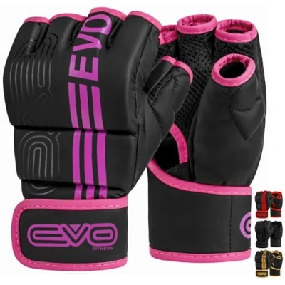 EVO Fitness Matte Black MMA Gloves Martial Arts Mitts Grappling Sparring Men Muay Thai Cage Fighting Boxing Combat Sports Women pink UFC Punching Bag Training (Large, Pink)