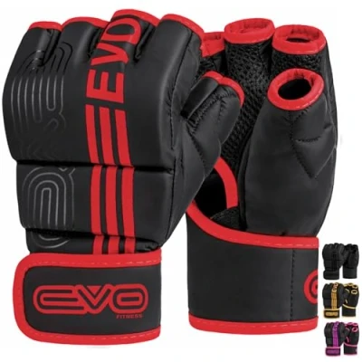 ☛ [CONSTRUCTION] EVO Fitness Men Women MMA Gloves are Made up of High Quality and Beautiful Matte Finish Faux Leather ☛ [PROTECTION AND COMFORT] EVO Fitness Sparring gloves Provide Ultimate Protection and Shock Absorption with High Density Multi Layer Injection Moulded EVA Foam Core and GEL Protection ☛ [UNIQUE BREATHABILITY] These Muay Thai Combat Kickboxing Gloves Feature Mesh Interior with Ventilation Palm Holes for Improved Air flow and Breathability ☛ [GRIP AND DURABILITY] These Karate & Boxing Bag Punching MMA Grappling Gloves Have Adjustable Straps Provides Snug Fitting with Added Gel Protection on the back of hand Knuckles , Matte Finish Long Lasting and Durable Design ☛ [PROFESSIONAL TRAINING QUALITY]: 100% Quality Guarantee Ideal for MMA, Martial Arts Training, Punch Bag Workout, Muay Thai, Sparring,Cage Fighting,Combat Sports, Karate, Gym, Kick Boxing, Home Fitness, Matte Black Durable Design, These MMA Gloves are Unisex Adults and Can be Used by Men Women Ladies Girls