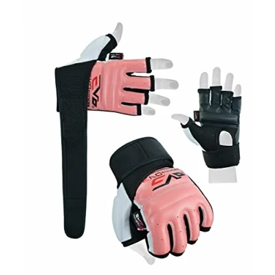 EVO Ladies Pink REX Leather body combat GEL Gloves MMA Boxing Punch Bag Martial Arts Karate Mitt (Small)