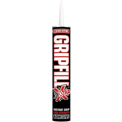 General description This high-strength, gap-filling adhesive is suitable for bonding a wide variety of building materials. EVO-STIK Gripfill Xtra provides a strong, durable bond on both interior and exterior surfaces, including vertical applications. It is formulated to bond rigid materials regardless of surface evenness and is water-resistant for outdoor use when the bond is protected from direct water exposure. Technical specifications Color: White Volume: 350ml Type: Grab adhesive Material: Resin Weight: Approximately 1.0kg Compatibility and accessories Wood Plywood Hardboard Chipboard Laminated plastic Brick Rigid insulation (except polystyrene) Metal Stone Breeze blocks Ceramics Concrete Sand/cement screeds Plasterboard Cement composite boards GRP (glass reinforced plastic) Installation Apply the adhesive to one surface and press the materials together firmly. Ensure surfaces are clean and free of dust or grease before application for optimal adhesion. Usage Ideal for bonding
