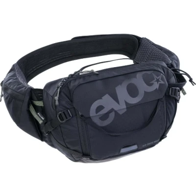 Thanks to the extra wide hip wings, the ventilated aero flex belt and the optimized air flow contact system it not only sits safely and closely in place, it also distributes the weight perfectly for extra comfort.Wide ventilation channels and the coarse mesh on the back section provide efficient airflow further enhancing comfort. Evoc’s venti flap with uphill and downhill modes offers extra ventilation when ascending and an even tighter fit while descending.The hip pack pro 3 ensures sufficient water supply with an included 1.5 l hydration bladder as well as a bottle holder. If you encounter technical problems on your ride, the exterior quickly and easily accessible tool compartment will hold repair kit, tools, etc. The pack is also equipped with compression straps to adapt the volume, a backlight clip, a key clip, spacious zippered pockets in the hip wings and much more. The bag is made of lightweight yet highly durable recycled ripstop nylon with pfc-free finishing.Venti flap mit uphill- und downhill-modusAir flow contact system für effiziente rückenbelüftungTool compartment with quick accessExtra wide hip wings with spacious zip pocketsHydration system compartment incl. 1.5 l bladderFeatures:Air flow contact systemAiro flexVenti flapHydration system compartmentTool compartment with quick accessCompression strapsBacklight clipExtra wide hip wingsDimensions3 l, 470g + 130 g, 28 x 18 x 8 cmMaterialN210 D RIPSTOP, 3D AIR MESH, AIROFLEX