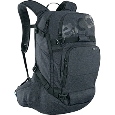 Maximum safety: The built-in EVOC LITE SHIELD PLUS protector has outstanding impact protection properties with extreme lightness, flexibility and temperature insensitivity. Perfect wearing comfort: The clever AIRO FLEX system enables the perfect fit of the pack around the waist and the BODY HUGGING system ensures equal weight distribution. Well thought out storage: This Evoc rucksack has a wide range of different pockets, which include pockets for ski/splitboard skins, a ski and snowboard holder, and pockets for valuables and much more. Additional compartments: As well as the main compartment, the outdoor backpack has a hydration bladder compartment and an insulated shoulder strap for the drinking tube, to unsure water does not freeze. Box contents: EVOC LINE PRO 30 touring backpack - LITESHIELD PLUS Protection - Boddy Hugging - Ski mount - Snowboard mount - Shoulder strap - Avalanche compartment - Size: L/XL - Colour: Black