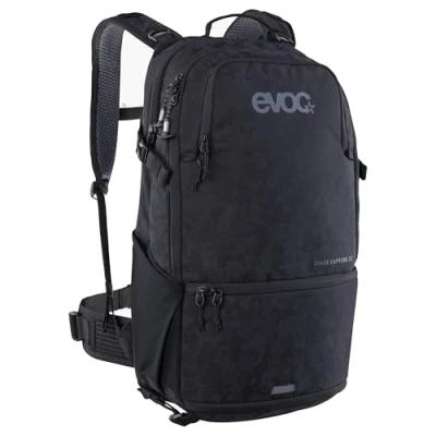 Practical camera bag: The 50 x 27 x 14 cm backpack offers plenty of storage space, while a camera compartment on the side allows a camera to be transported safely. Comfortable transport: The AIRFLOW CONTACT SYSTEM on the photo bag ensures continuous air circulation on the back so that no uncomfortable heat is generated during transport. Ideal volume adjustment: compression straps on the rucksack allow you to reduce the volume at any time so that all the contents are held securely in the rucksack. Practical features: The trekking backpack has a hydration bladder compartment, a glasses and laptop compartment, a food compartment and a helmet holder. This means that everything can be stowed away neatly. Scope of delivery: STAGE CAPTURE 16 - practical photo bag - versatile trekking backpack - quick access to the camera - dimensions: 50 x 27 x 14 cm - weight: 1200 g - colour: black
