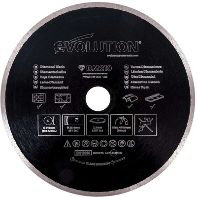 Evolution Power Tools Diamond Blade, Continuous Rim 210 x 25.4mm EVL210DIAM