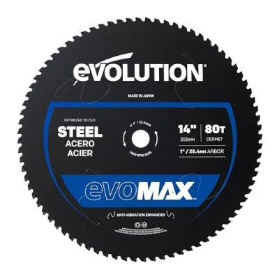 Evolution Power Tools, EVOMAX 355mm 80 Teeth Cermet Carbide Blade for Professional Heavy Duty Mild Steel Cutting