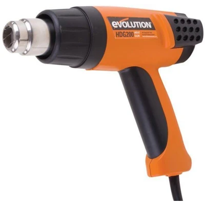 General description The Evolution HDG200 Adjustable Digital Heat Gun is a versatile tool designed for various applications, including stripping paint, removing wallpaper, patching roofing materials, and making electrical connections safe with heat shrink. With its powerful 2000W motor, this heat gun is essential for both tradespeople and DIY enthusiasts alike. Technical specifications Input Power: 2000W Airflow: 120-550 L/min Air Temperature Range: 50-630°C Weight: 0.8 kg Sound Pressure Level: 75 dB(A) Sound Power Level: 88 dB(A) Supply Voltage: 230V Compatibility and accessories Includes a carry case Comes with four nozzles: Reducer Nozzle, Reflector Nozzle, Flat Nozzle, Glass Protector Nozzle Supplied with a scraper Installation Easy to use with a pistol grip design Integral base stand for hands-free operation Usage Ideal for stripping and drying paint and varnish Perfect for removing adhesive labels and heating liquids Can be used for drying out damp wood Instantaneous heat for