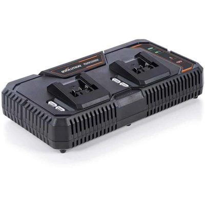 General description The Evolution Cordless R18RCH-Li2 Double Port Fast Charger is a smart, dual port, rapid battery charger designed for Evolution EXT Li-Ion 18V cordless power tools. This charger allows you to charge two batteries simultaneously, maximizing productivity and ensuring you stay powered throughout the day. With intelligent battery management, it optimizes charge time while extending battery life. Technical specifications Name: R18RCH-Li2 Product Code: 108-0001A Charging Ports: 2 Charging Voltage: 2x 21V Nominal Battery Voltage: 18V Peak Charging Current: 2x 6A Input Voltage: 230/240V Packaged Dimensions: 88 x 380 x 197 mm Weight: 1.66 kg Compatibility and accessories Compatible with all Evolution EXT Li-Ion batteries (2Ah, 4Ah, 5Ah, and 8Ah models) Also works with Erbauer 18V Li-Ion EXT batteries Usage Fully charges a 2.0Ah battery in just 30 minutes Fully charges a 5.0Ah battery in just 60 minutes Lightweight and compact design for easy transport Other information