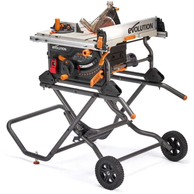 NEXT GEN TABLE SAW - The R255TBLX is designed to replace the popular Rage 5-S, packed with improved features - ready to deliver new standards for accuracy, reliability & powerful multi-material cutting WITH WHEELED STAND - Comes equipped with a tubular steel all-terrain wheeled support for added portability MULTI-MATERIAL CUTTING - Blade Included - Tungsten Carbide Tipped (TCT) cuts steel, aluminium, new or reclaimed wood with nails, plastic & more MORE ACCURATE - Features a Dual Rack & Pinion Rip-Fence, a new Blade Height & Bevel Adjustment Mechanism, patented Blade-to-Rip-Fence Parallelism Adjustment for perfectly aligned cuts 3 YEAR WARRANTY - The R255TBL comes equipped with Evolution's 3 year warranty for guaranteed performance and peace of mind VERSATILE & ADJUSTABLE - Up to 85mm depth of cut, up to 45˚ bevel with 58mm depth DUST EXTRACTION - Active Dust Collection (ADC) FEATURES - 1650w motor features thermal overload protection and a paddle style emergency stop, clear blade guard offers improved cut visibility, Weight: 46.737999544 Pounds, Manufacturer: Evolution Power Tools