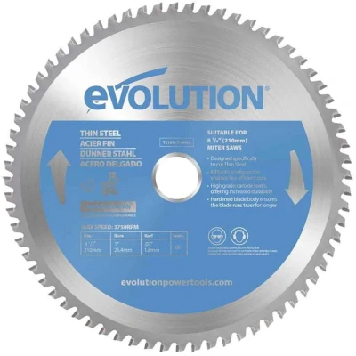 Evolution Power Tools T210TCT 68MS Mitre Saw Blade (AKA TCT Blade) For Cutting Thin Steel Carbide Tipped Metal Produces Virtually No Heat, Burrs or Sparks, 210 mm