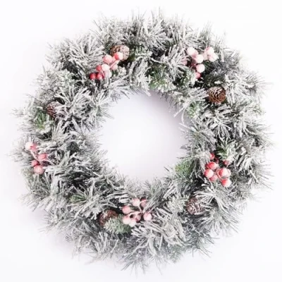 Full, Realistic Look: Crafted with 100 hand-designed tips, this 50cm wreath delivers a full and natural appearance that looks stunning on any front door or wall. A perfectly balanced 20-inch size, not too small, not too overwhelming which is Perfect Size for UK Standard Doors. Frosted Winter Finish with Red Berries & Pinecones: Features lifelike pinecones, festive berries and a soft snow-dusted finish for an authentic winter look. Pre-decorated for quick and effortless Christmas decorating. Durable, No-Shed & Hypoallergenic: Made using high-quality PVC tips and a structured frame for improved strength and shape retention. Hypoallergenic, odourless and non-shedding, enjoy your wreath year after year. Versatile Decorating Options for Any Home Style: Ideal for front doors, hallways, fireplaces, walls, windows or table centrepieces. Works with both minimal and fully-decorated Christmas themes. No greenery means zero yearly maintenance and long-lasting colour retention. Indoor & Sheltered Outdoor Use: Suitable for outdoor doors under shelter, resisting light rain, wind and cold. Strong internal wire frame for secure hanging using a ribbon, hook or wreath hanger (not included). Designed to remain stable even on breezy days.