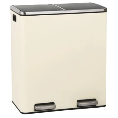 EVRE 60L Kitchen Waste Rubbish Recycling Soft Close Bin 2 x 30L Double Compartment Separation with Removable Plastic Buckets, Odour Seal, Smudge & Fingerprint Resistant… (Cream)