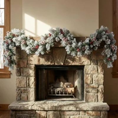 ManoManoGeneral description Perfectly sized at approximately 9ft, this artificial Christmas garland is designed to enhance your holiday display. With over 200 individually crafted frosty tips, it creates a visually appealing atmosphere that will impress guests as they move through your home or gather around the fireplace. The garland is completely odourless and hypoallergenic, ensuring safety for the entire family. Technical specifications Length: 275 cm (9 ft) Material: Fire resistant PVC textured material Features: 200+ frosty tips, artificial red berries, realistic pine cones Usage Ideal for decorating fireplaces, stair railings, window frames, and hallways Can be used indoors and outdoors (recommended for sheltered areas only) Minimal maintenance required once placed Other information Each branch tip is adjustable for personalized styling Can be trimmed to desired length using wire cutters