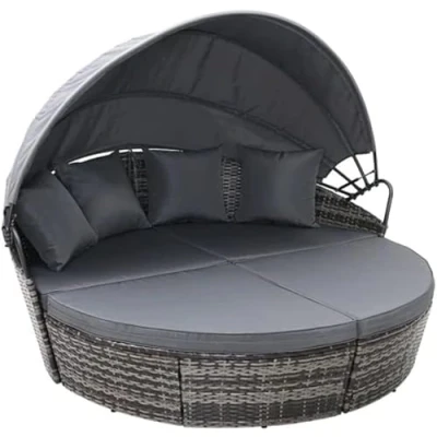 Luxury Escapes: Experience pure luxury and relaxation with the exquisite Evre Bali Day Bed. Crafted to evoke the essence of a dreamy holiday getaway, this opulent piece infuses your garden with indulgence. Sink into the sumptuous depths of premium PE rattan and plush cushions for unrivaled comfort. Whether you seek tranquility, coziness, or style, the Evre Bali Day Bed fulfills your desires. Create your personal haven of sophistication and transform your garden into a sanctuary of leisure and style Year Round Elegance: Experience the spacious comfort of the Evre Bali Day Bed, designed to add style and practicality to your garden or patio. Its circular shape offers ample room to relax without occupying excessive space. Stay protected from the sun with the extendable canopy, ensuring year-round enjoyment. Elevate your outdoor space with the perfect blend of functionality and elegance Outdoor Durability: The Evre Bali Day Bed is built to thrive in outdoor conditions. Its toughened powdered steel frames and PE rattan weaving ensure exceptional strength and durability. Enjoy long-lasting comfort with low maintenance, UV-resistant. The showerproof, extendable canopy keeps you dry during sudden summer showers. Protect and prolong the lifespan of your furniture by covering it when not in use. Elevate your outdoor space with this must-have addition, designed to withstand the elements and provide unrivaled outdoor relaxation Effortless: Maintaining the Evre Bali Day Bed is a breeze. The wipeable rattan material is easy to clean with a damp cloth, while the removable cushions are dirt resistant and can be gently hand washed. Lightweight and portable, this bed offers hassle-free mobility. Experience the joy of easy maintenance and versatile design with the Evre Bali Day Bed Specifications: This set includes 4 corner seats, 4 back cushions, and 1 canopy with base. It arrives flat-pack in 3 boxes and requires easy assembly with a provided instruction manual. The maximum weight allowance is up to 300kg for the whole bed. Approximate dimensions when extended are 180 x 175 x 146 cm LxWxH. Experience convenience, comfort, and style with this exceptional outdoor furniture set